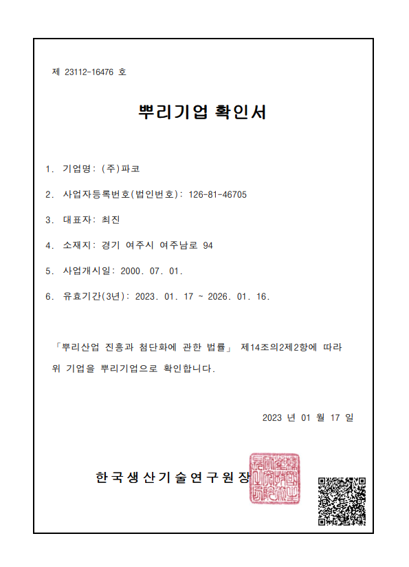 2023³â (ÁÖ)ÆÄÄÚ »Ñ¸®±â¾÷ ÀÎÁõȹµæ
