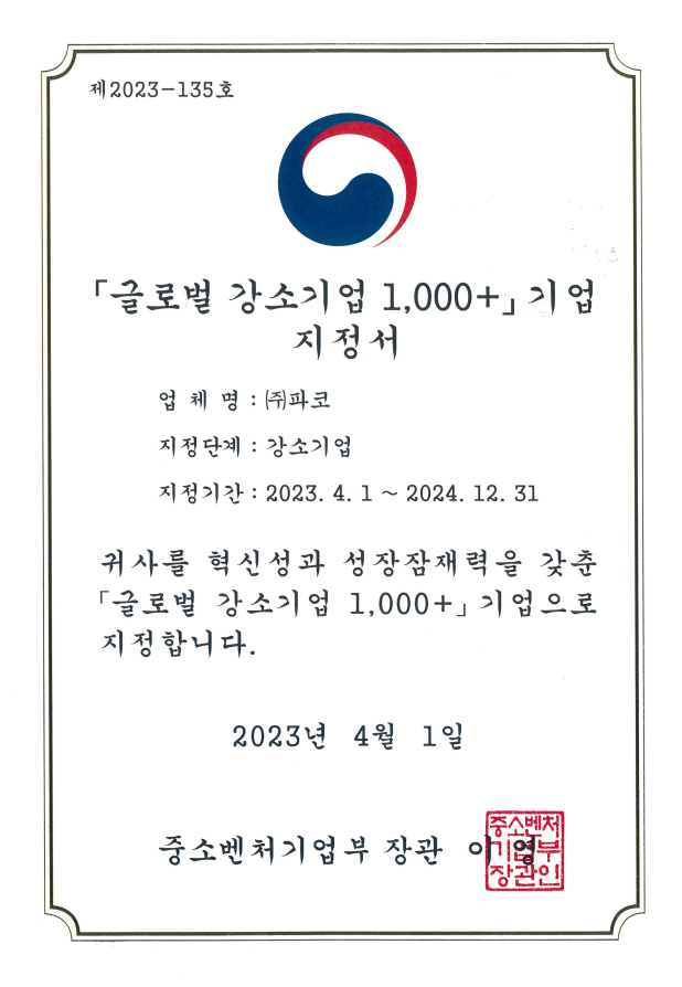 (ÁÖ)ÆÄÄÚ 2023³â ±Û·Î¹ú °¼Ò±â¾÷ ÁöÁ¤µÇ¾ú½À´Ï´Ù.